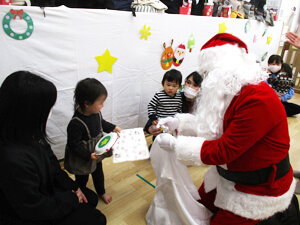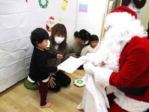 ひよこぐみさんも大きなサンタクロースさんにびっくりして、泣き出してしまいましたが、しっかりとプレゼントをもらうことができました。